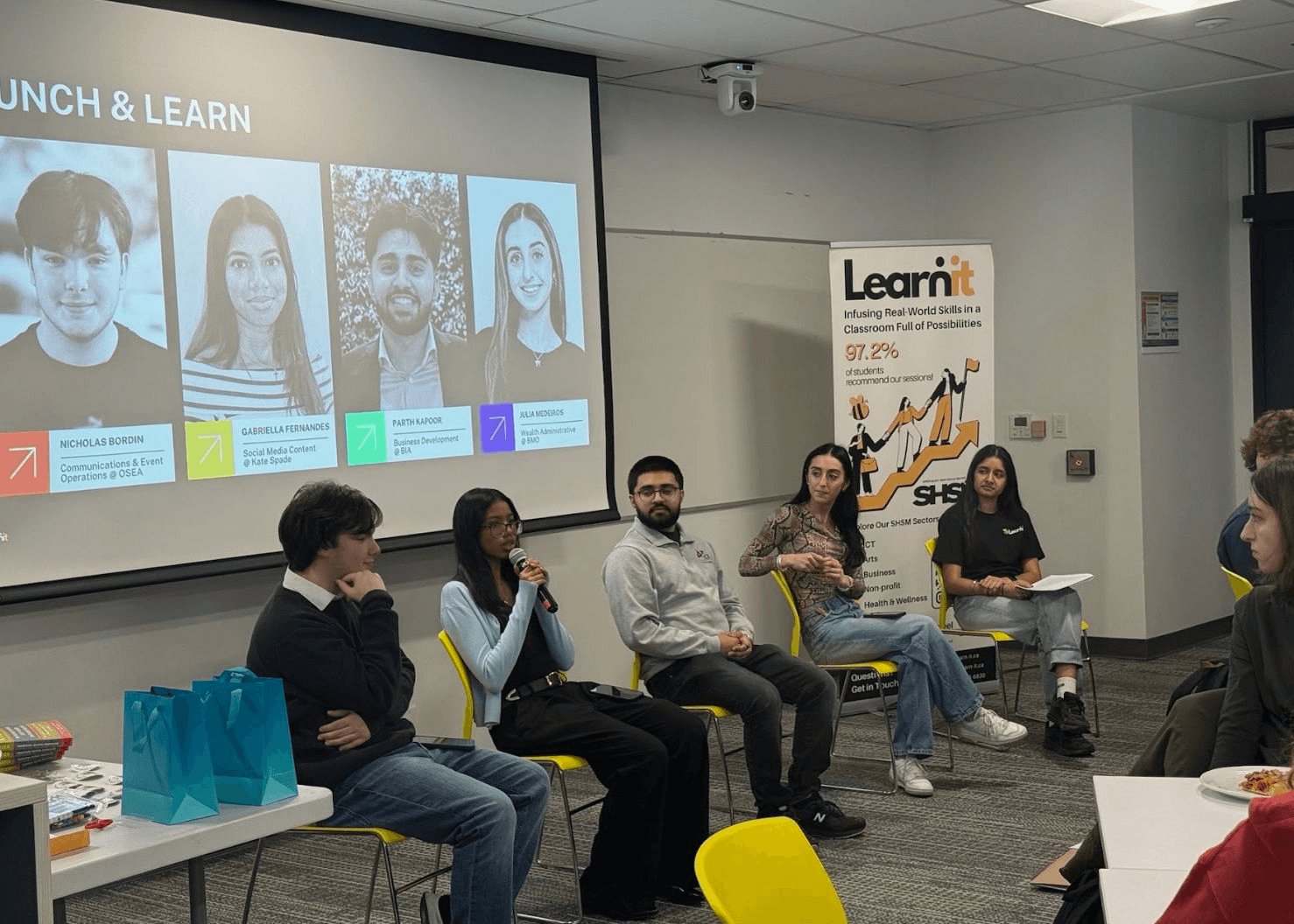 The industry panel reinforced this. Nicholas Bordin from OSEA, Gabriella Fernandes from Kate Spade, Parth Kapoor from BIA, and Julia Medeiros from BMO each shared their career journeys and showed students what early-career professionals actually do. For students exploring SHSM pathways in business, marketing, and nonprofit management, these conversations provide context that curriculum documents alone cannot deliver.